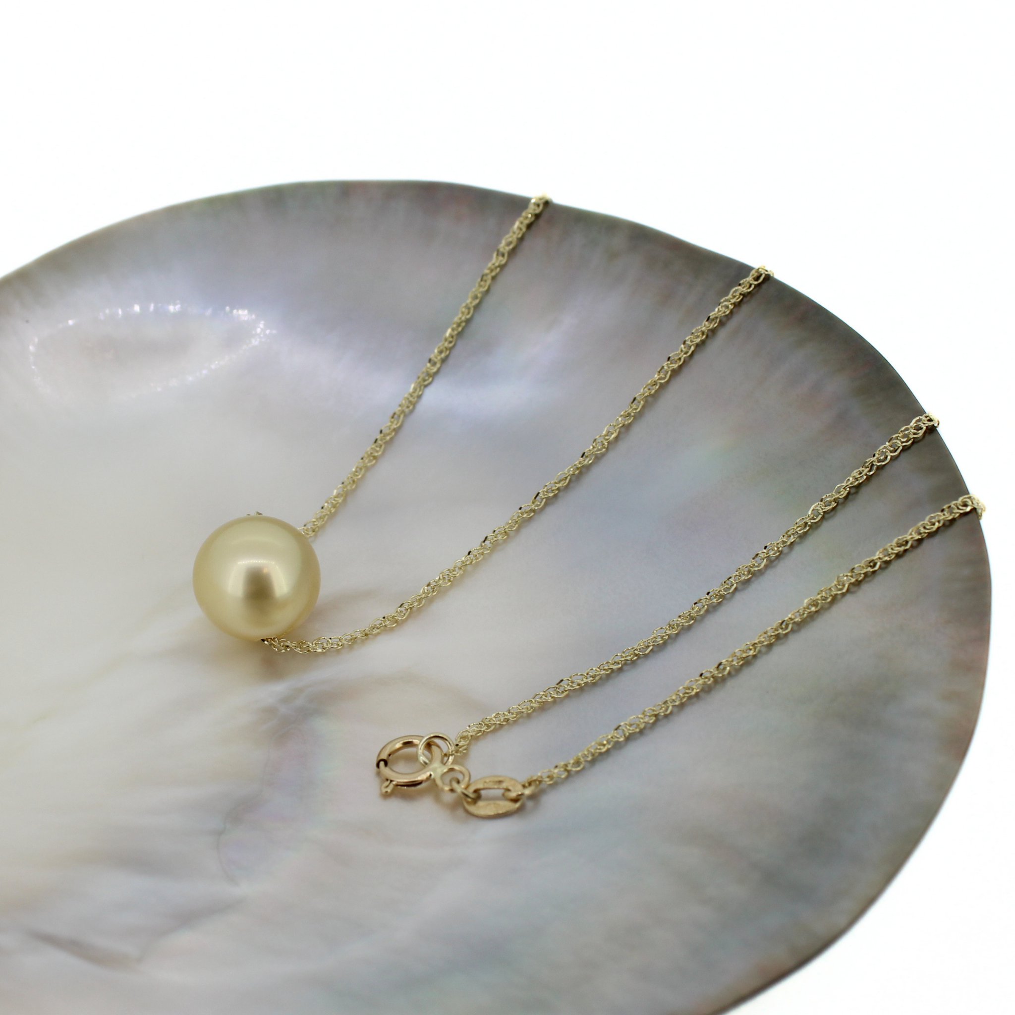 14k Gold Flawless South Sea Pearl Floating Necklace 16"