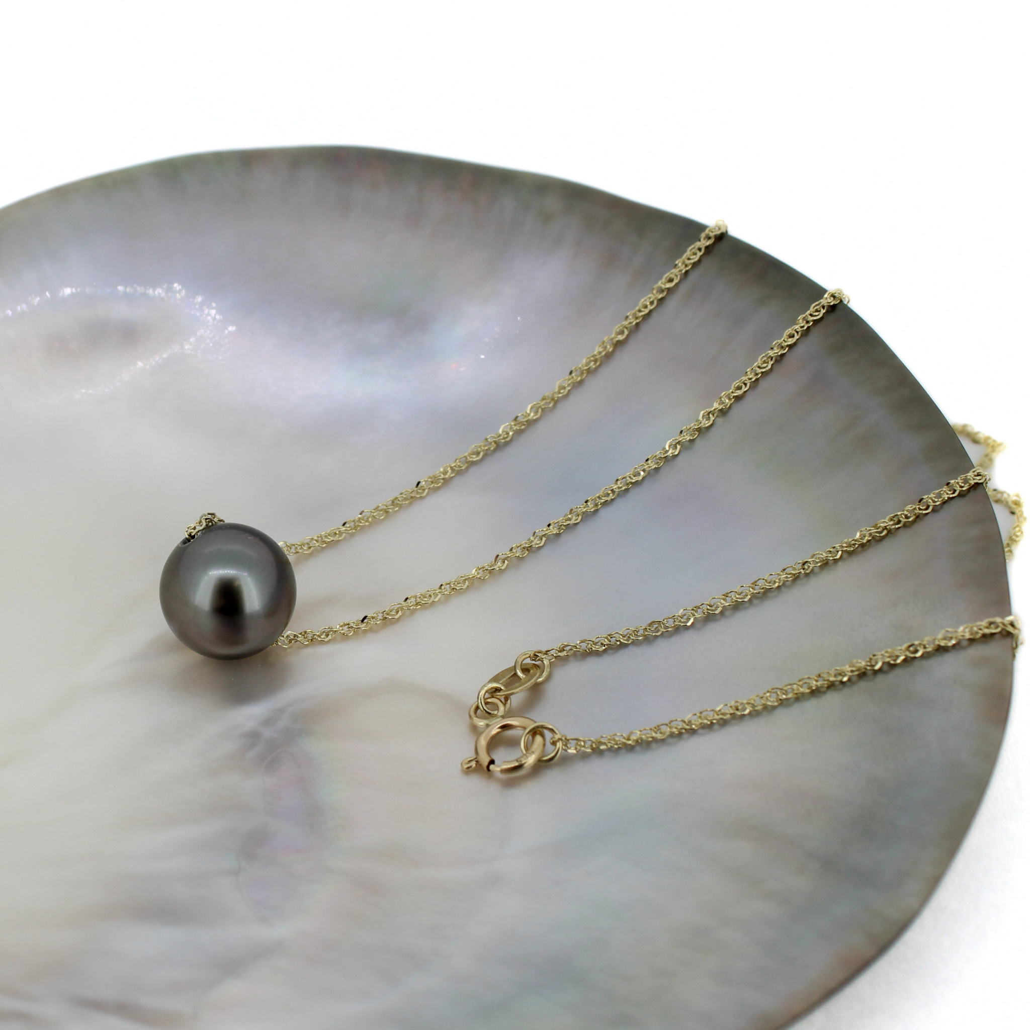14K Gold Tahitian Pearl Necklace 16"