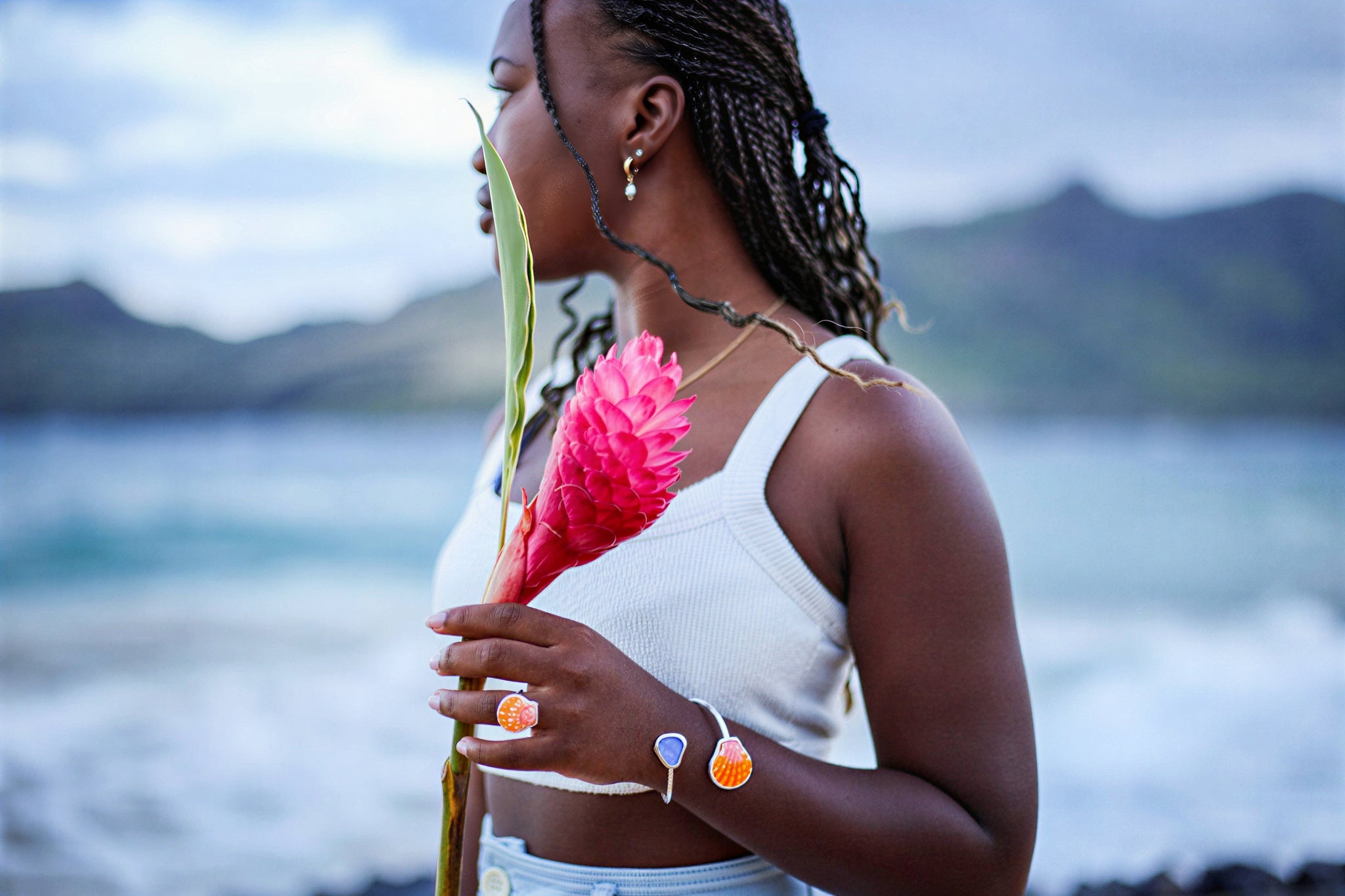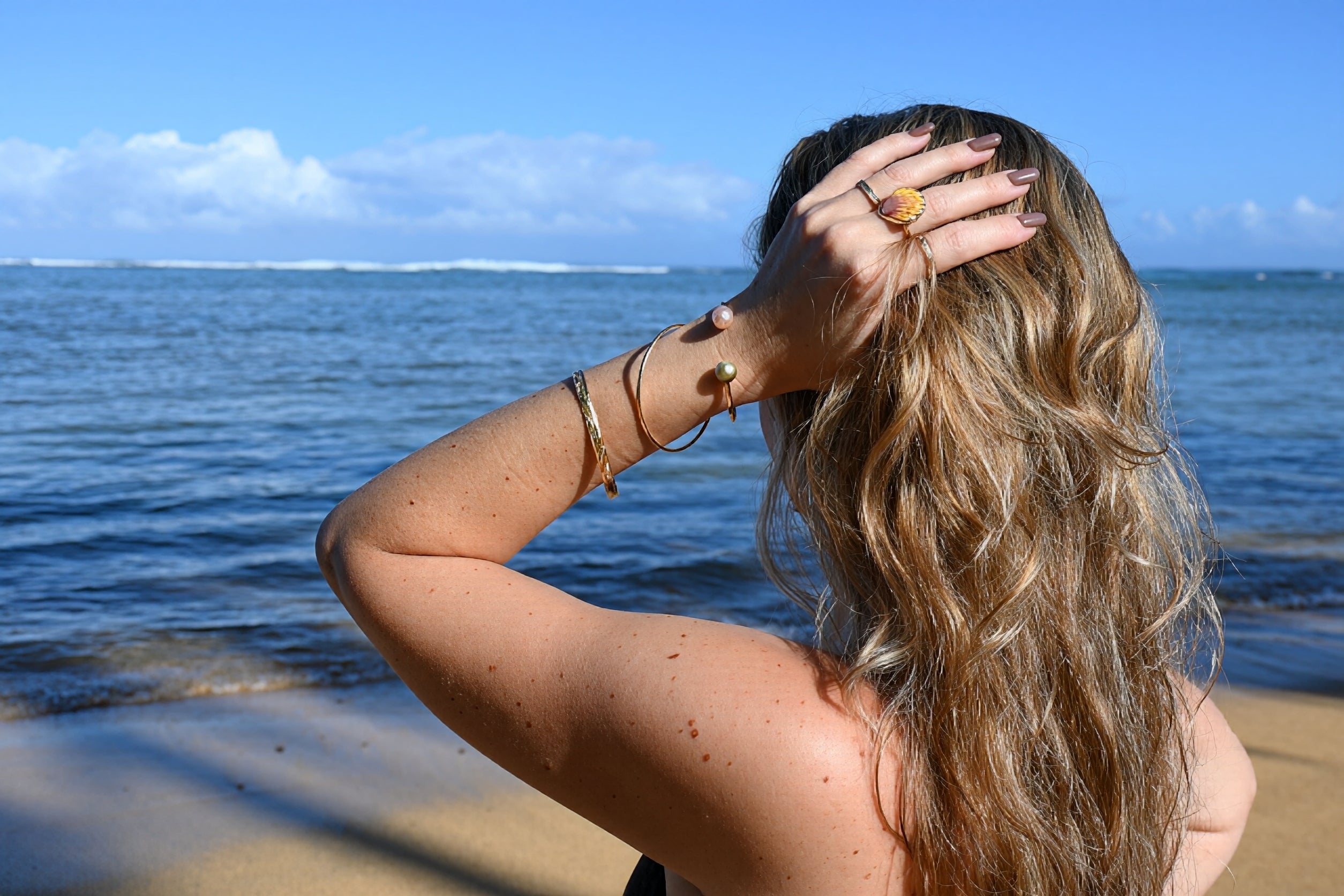 14k Gold Naupaka Flower Diamond Stud Earrings