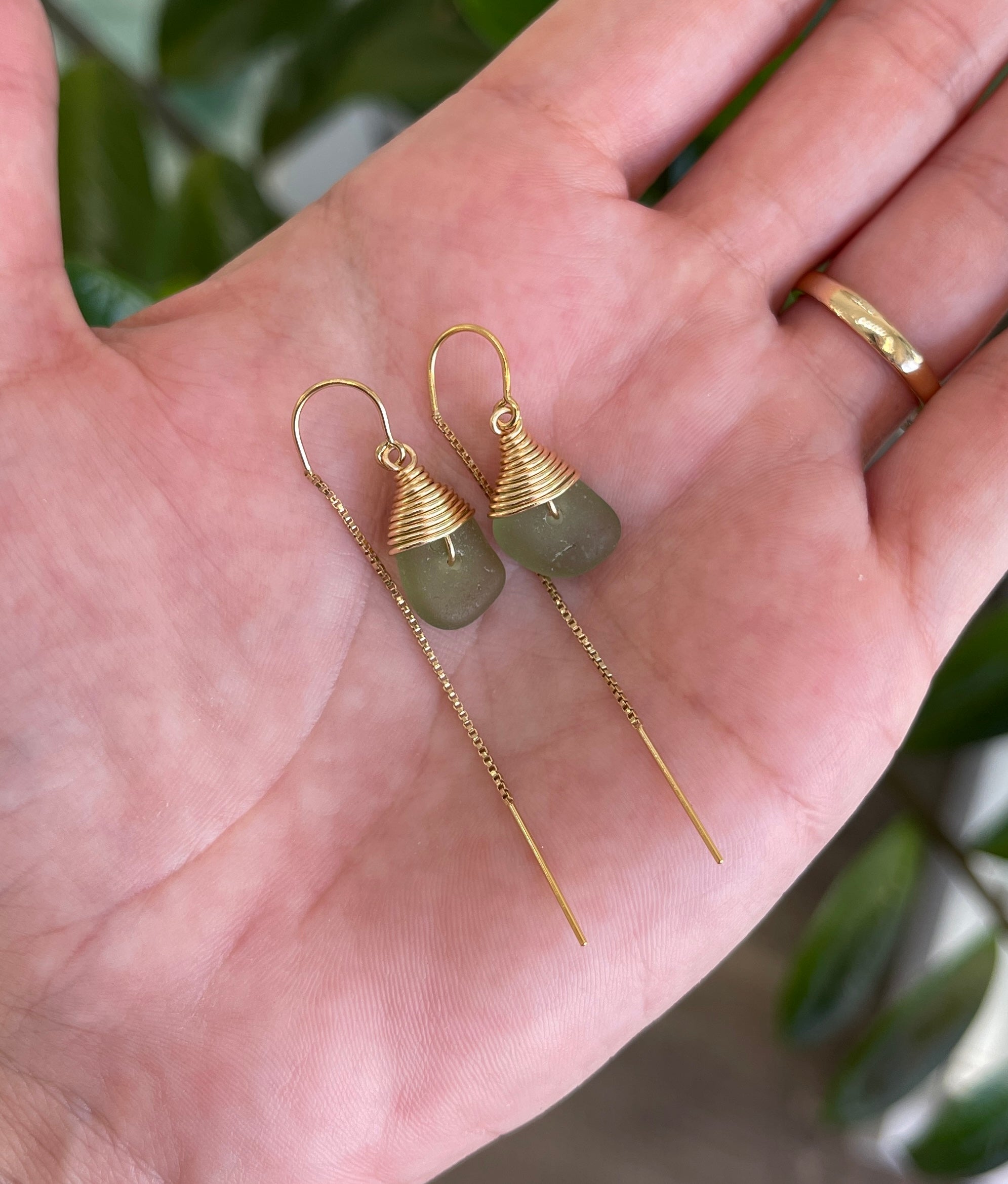 14K Gold Green Tahitian Pearl Floating Necklace 18"
