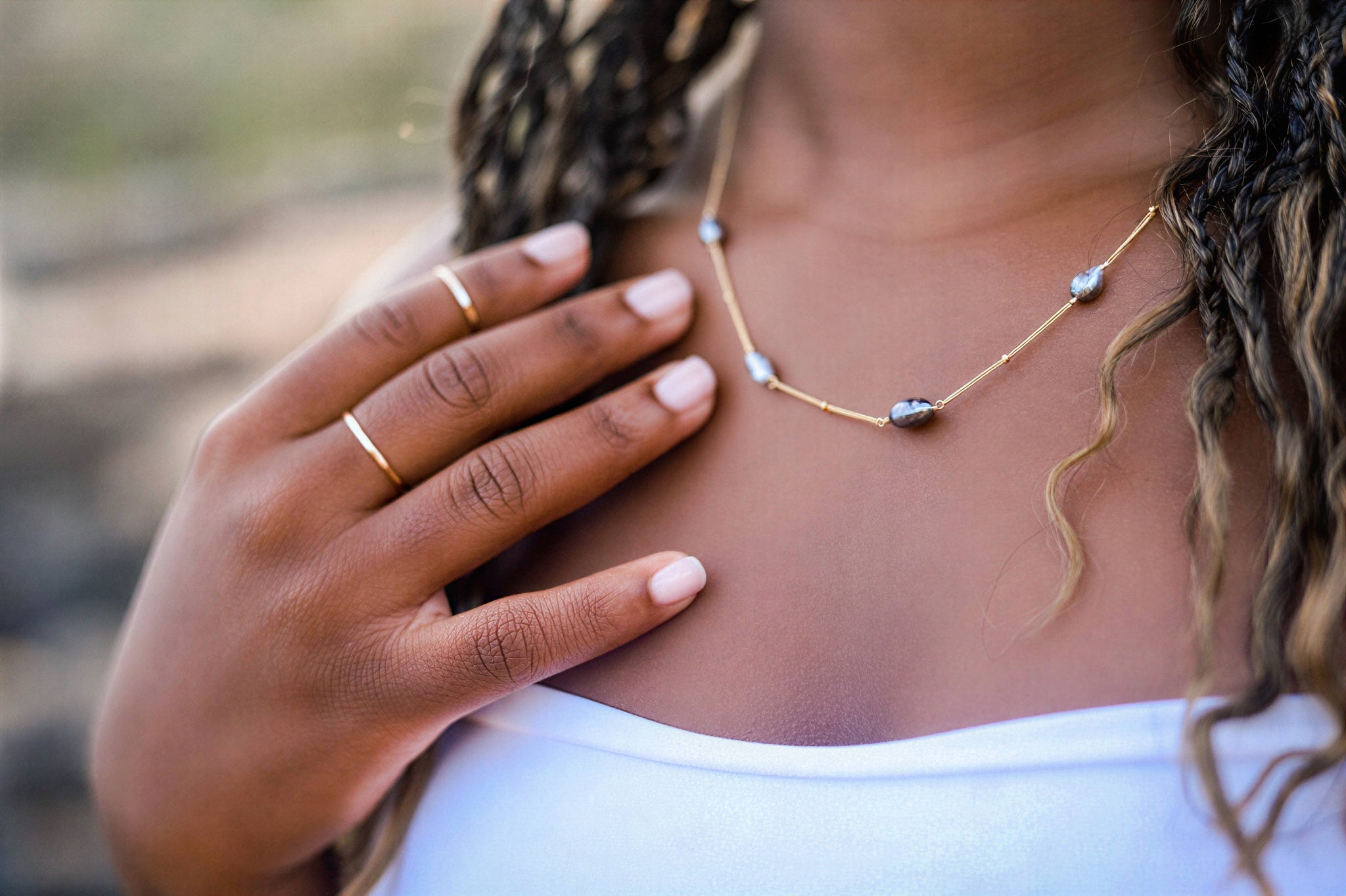 14k Gold Bronze Edison Pearl Floating Necklace 20"