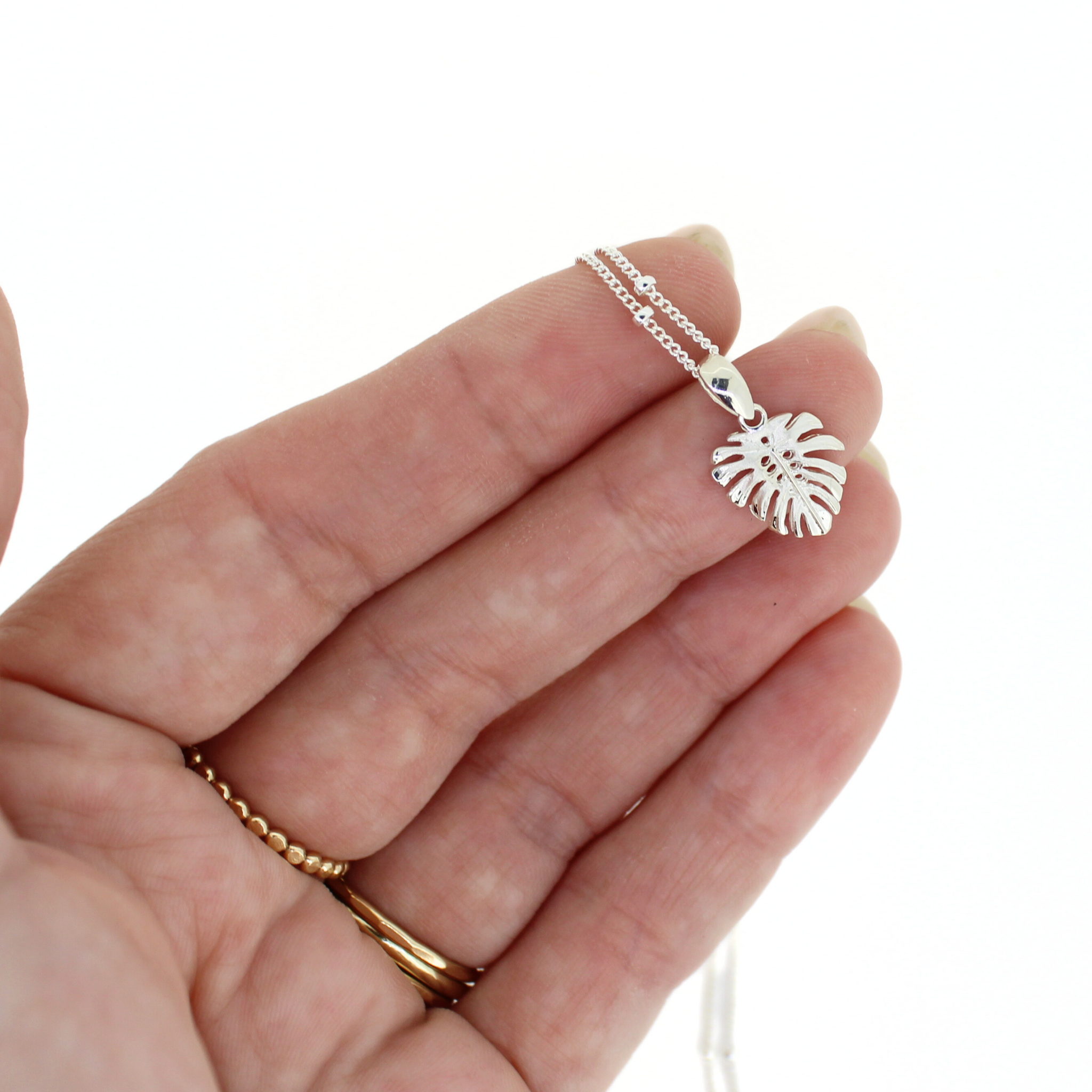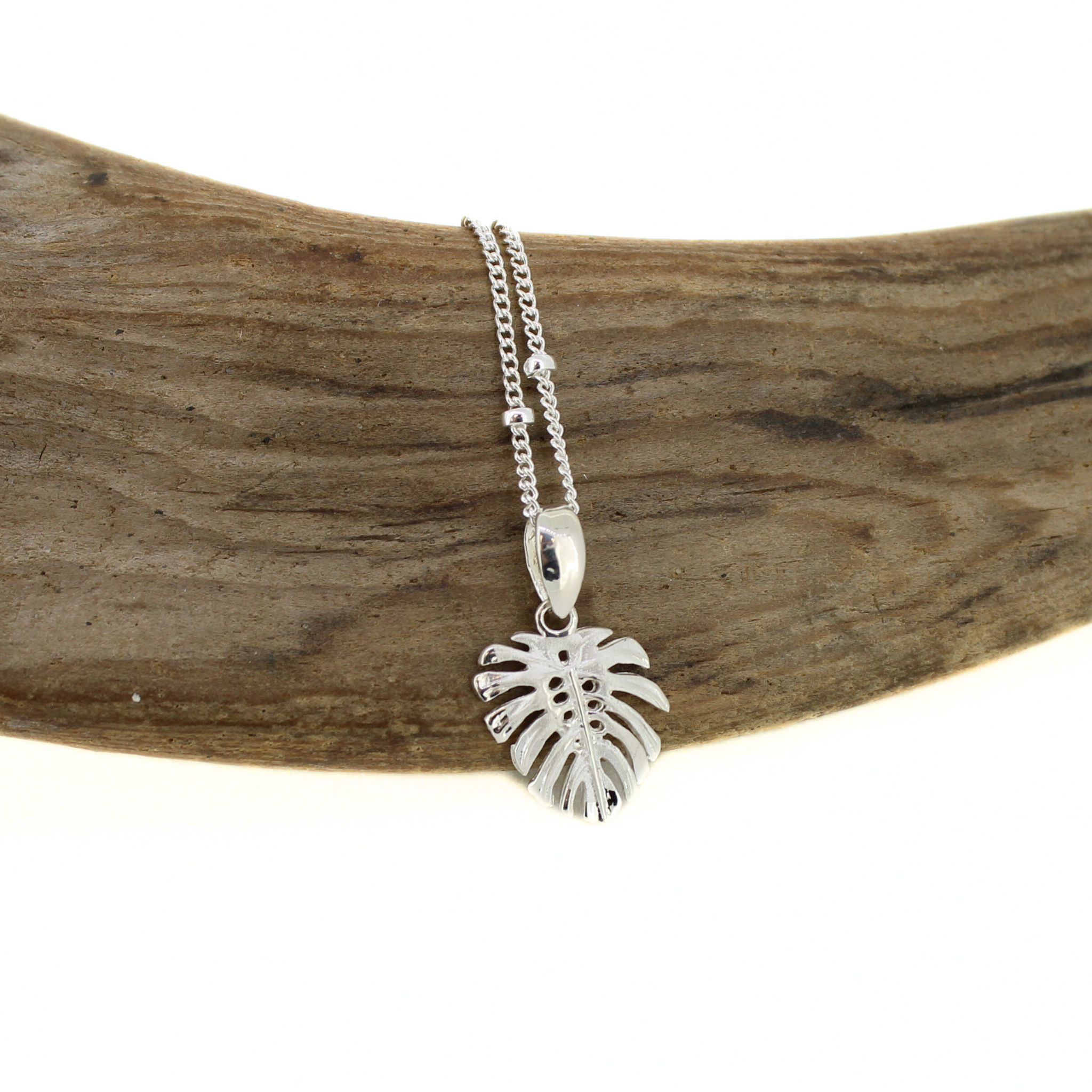 Sterling Silver Small Plumeria Necklace w/ CZ 18"