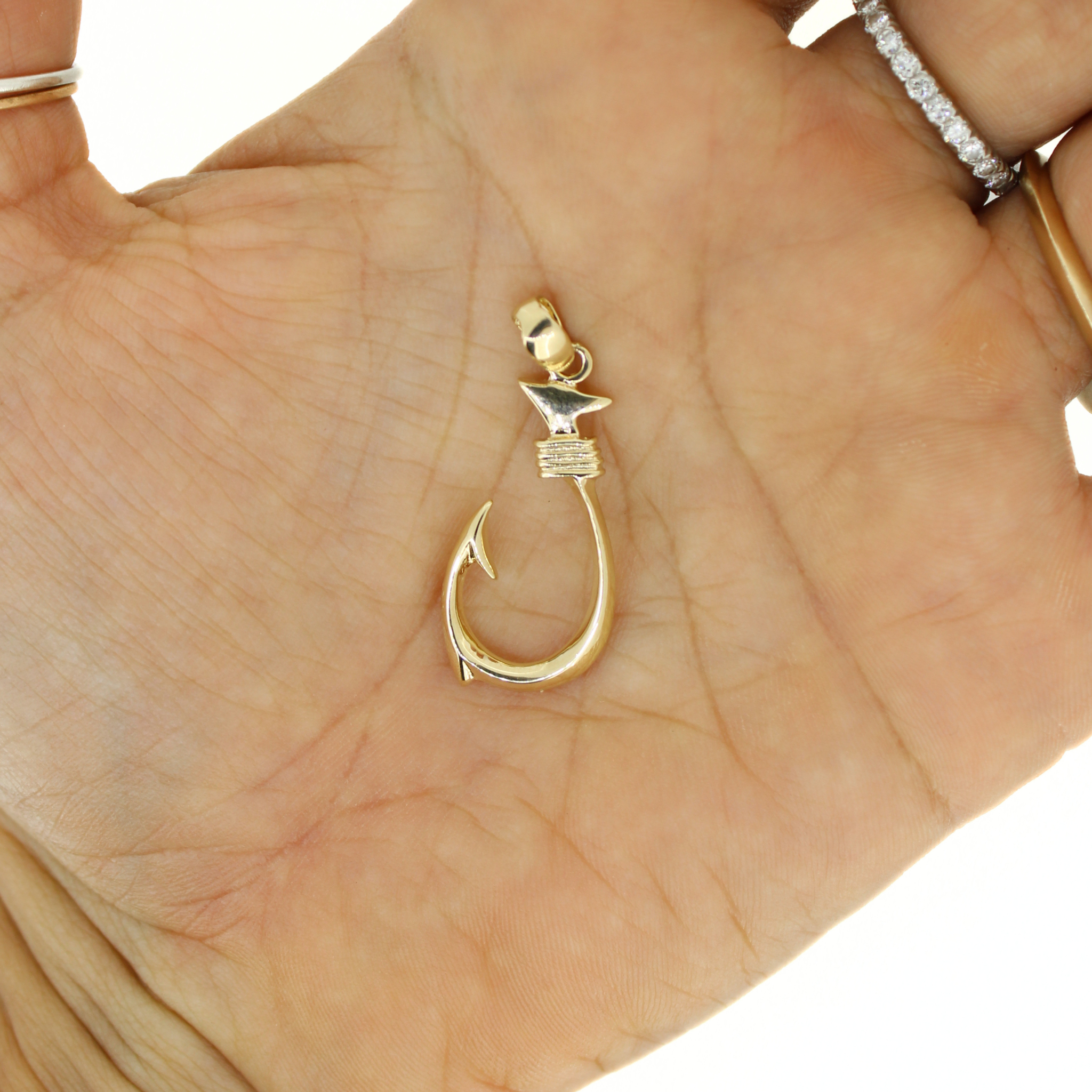 14k Gold Fish Hook Pendant