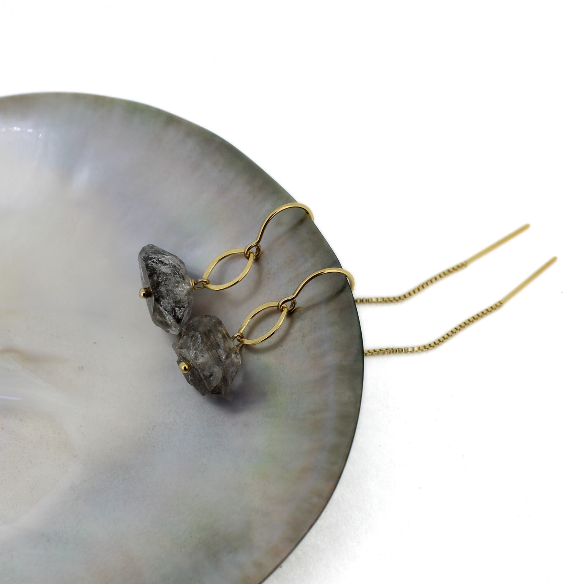 Gold Fill Chunky Herkimer Diamond Short Threader Earrings