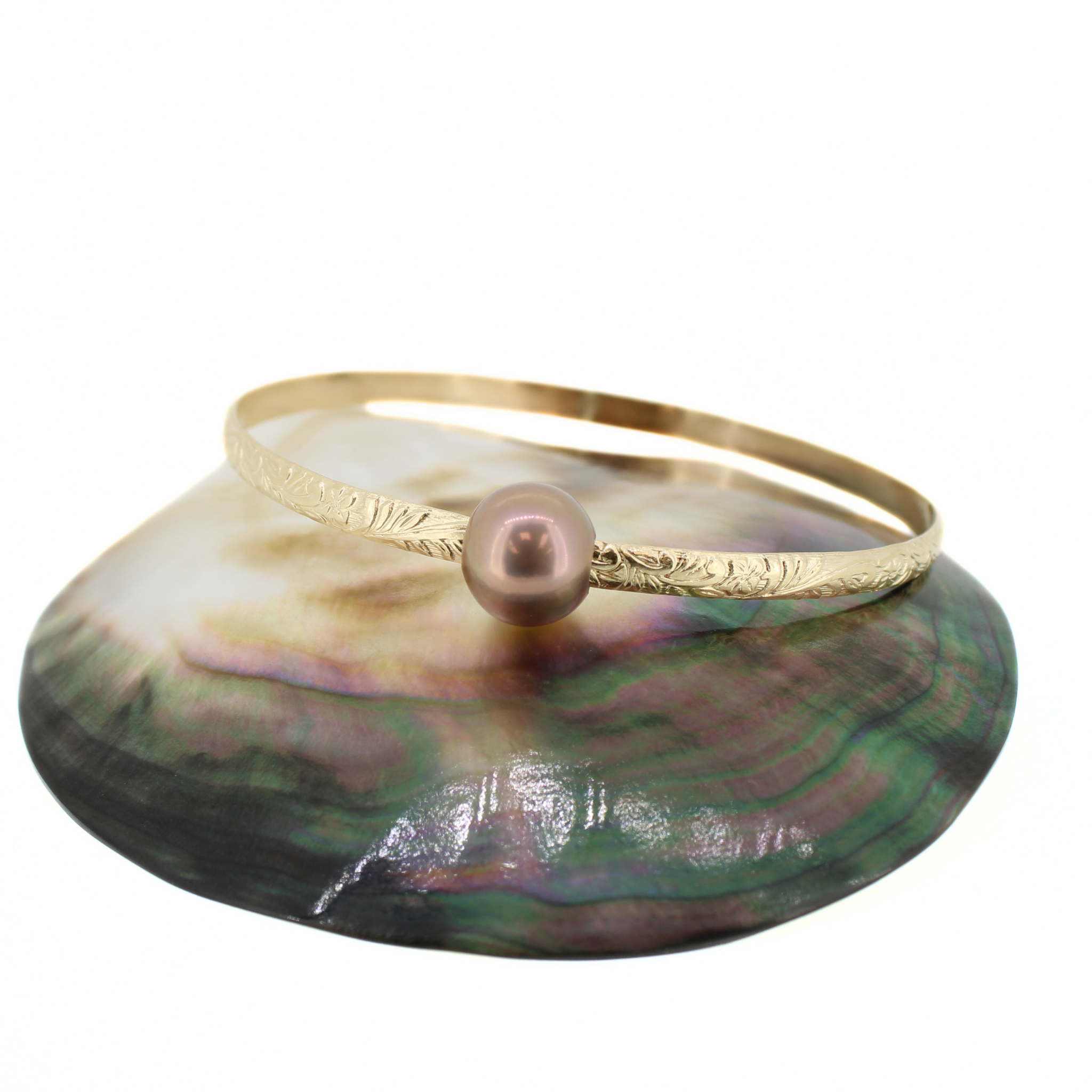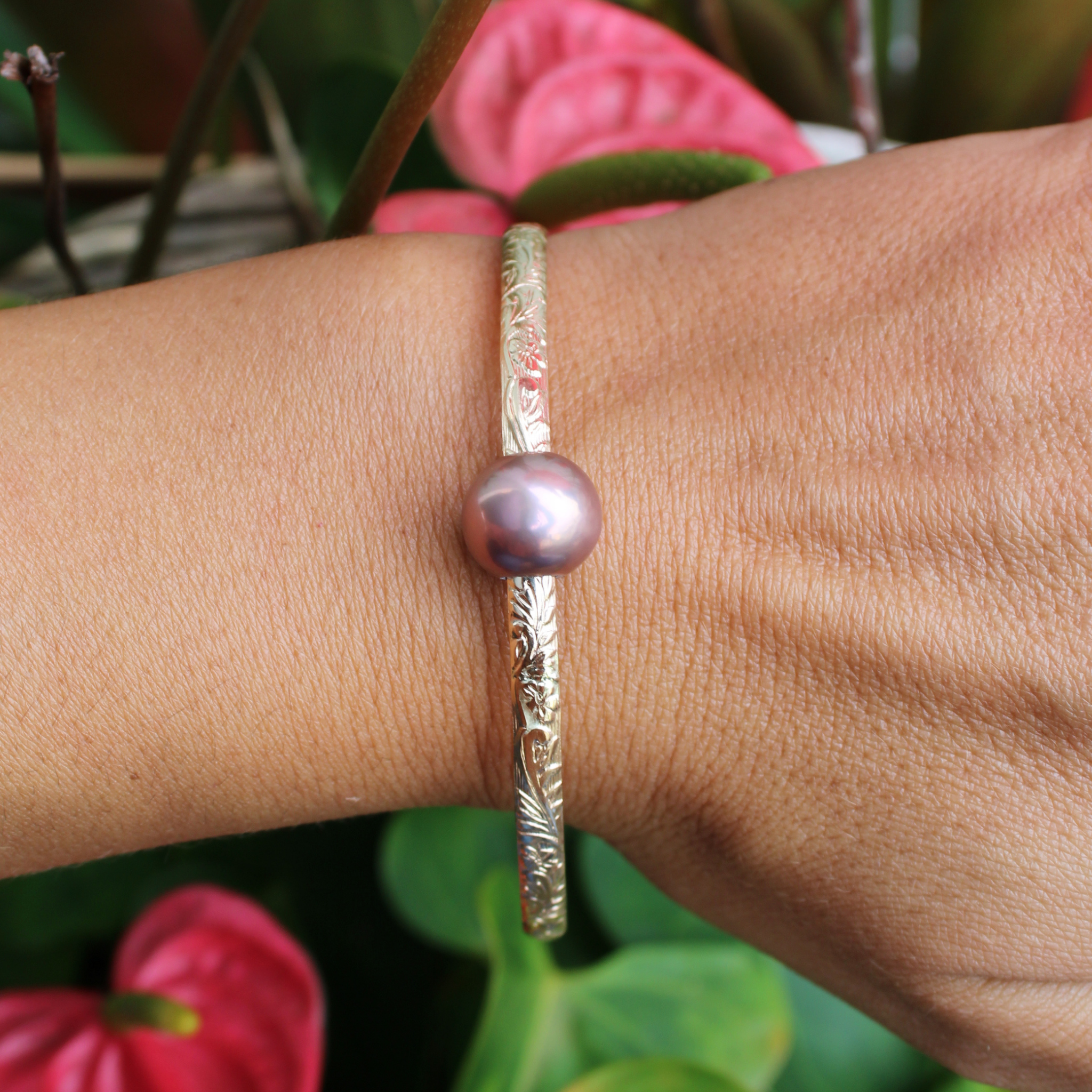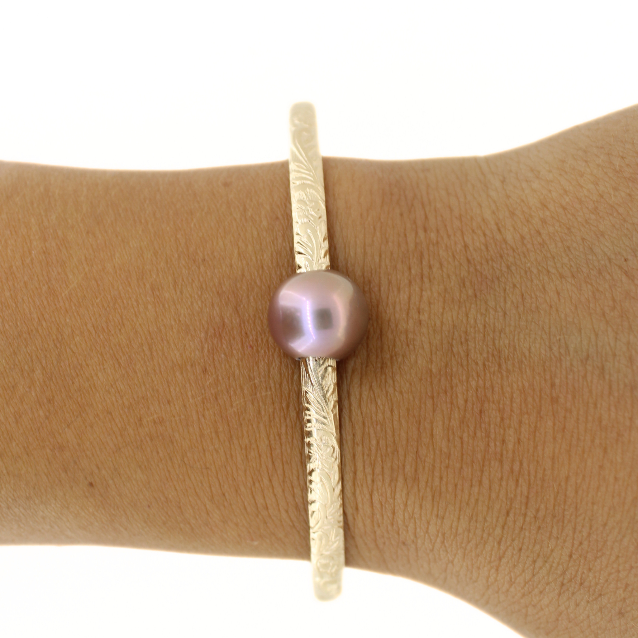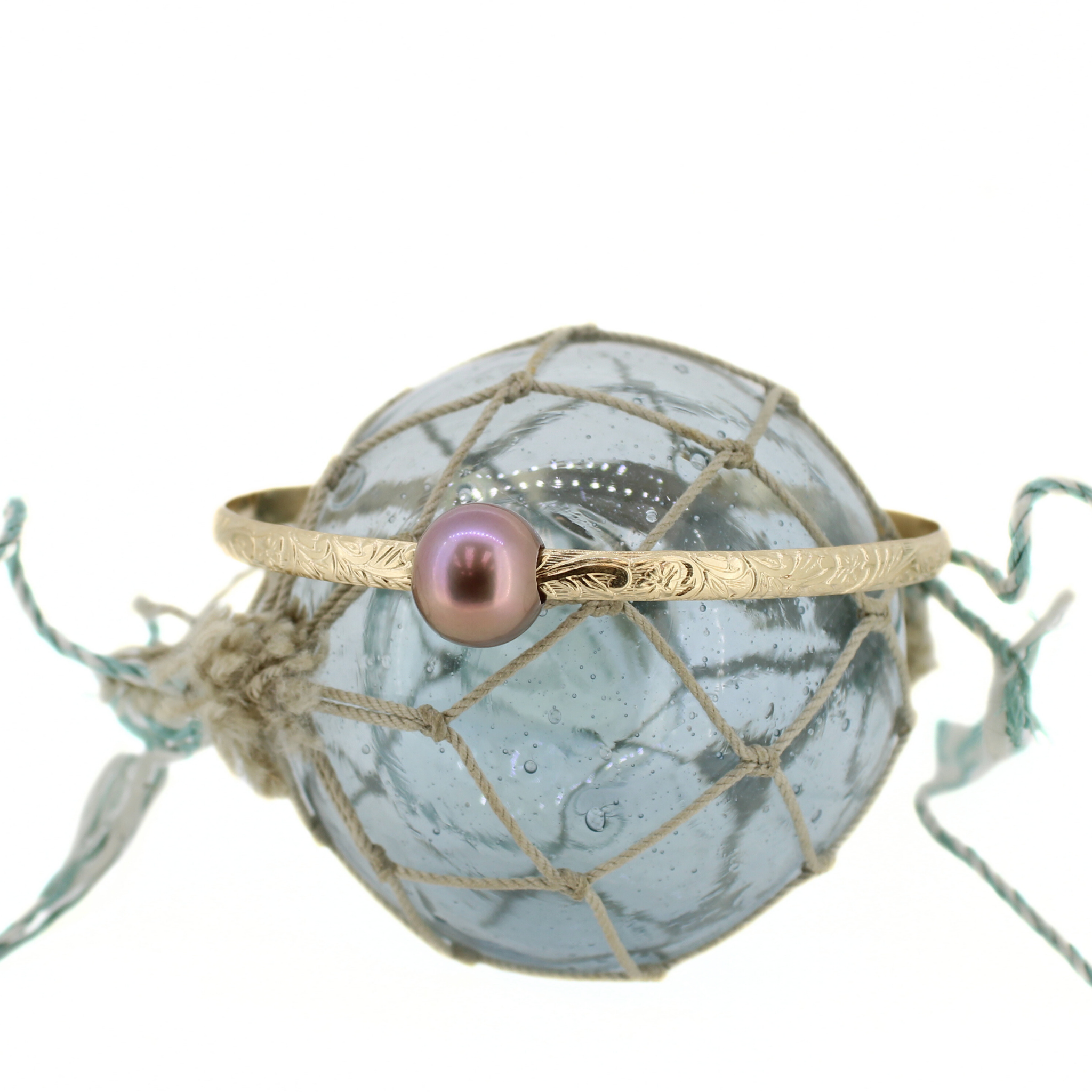 Gold Fill Purple Edison Pearl Heirloom Style Bangle Size 8