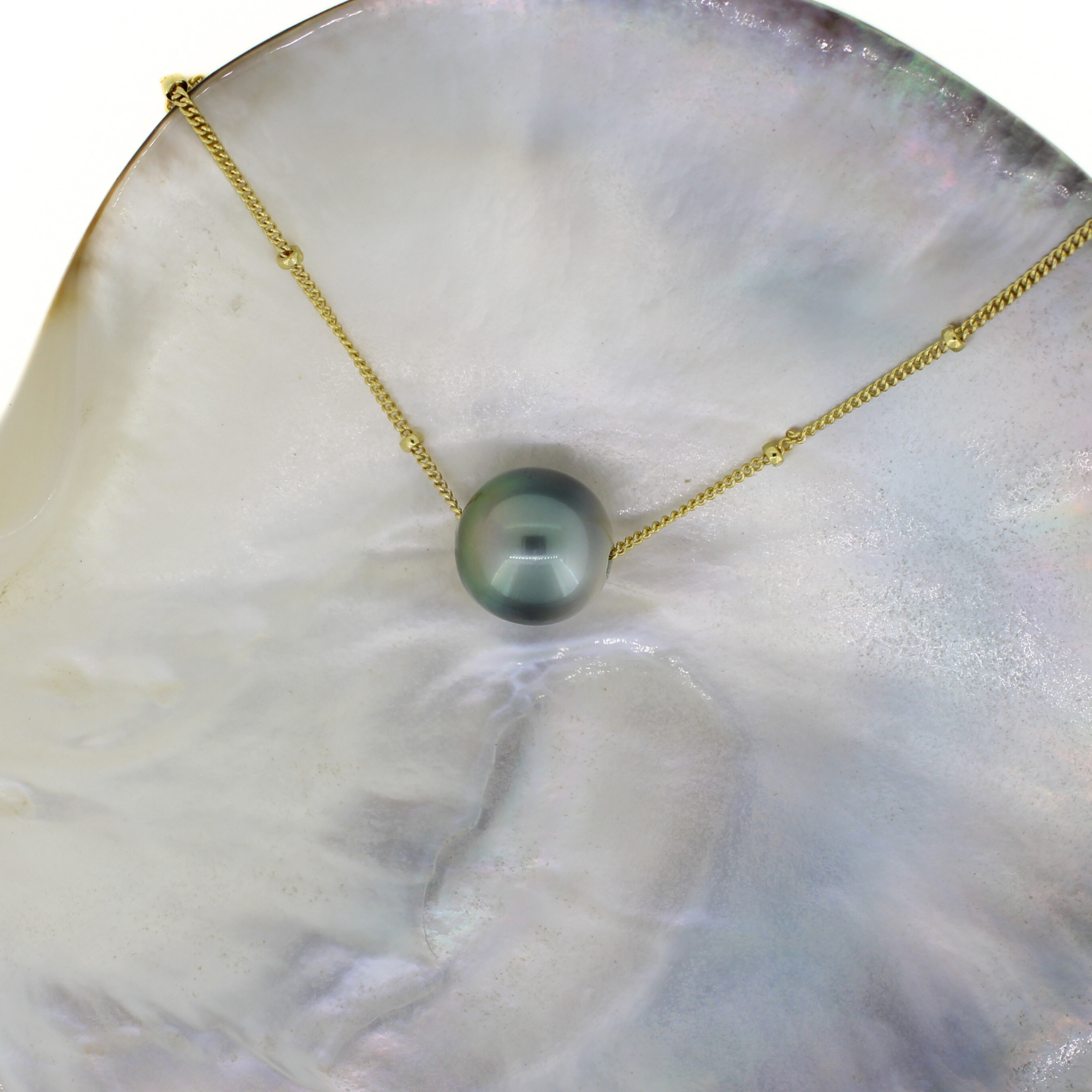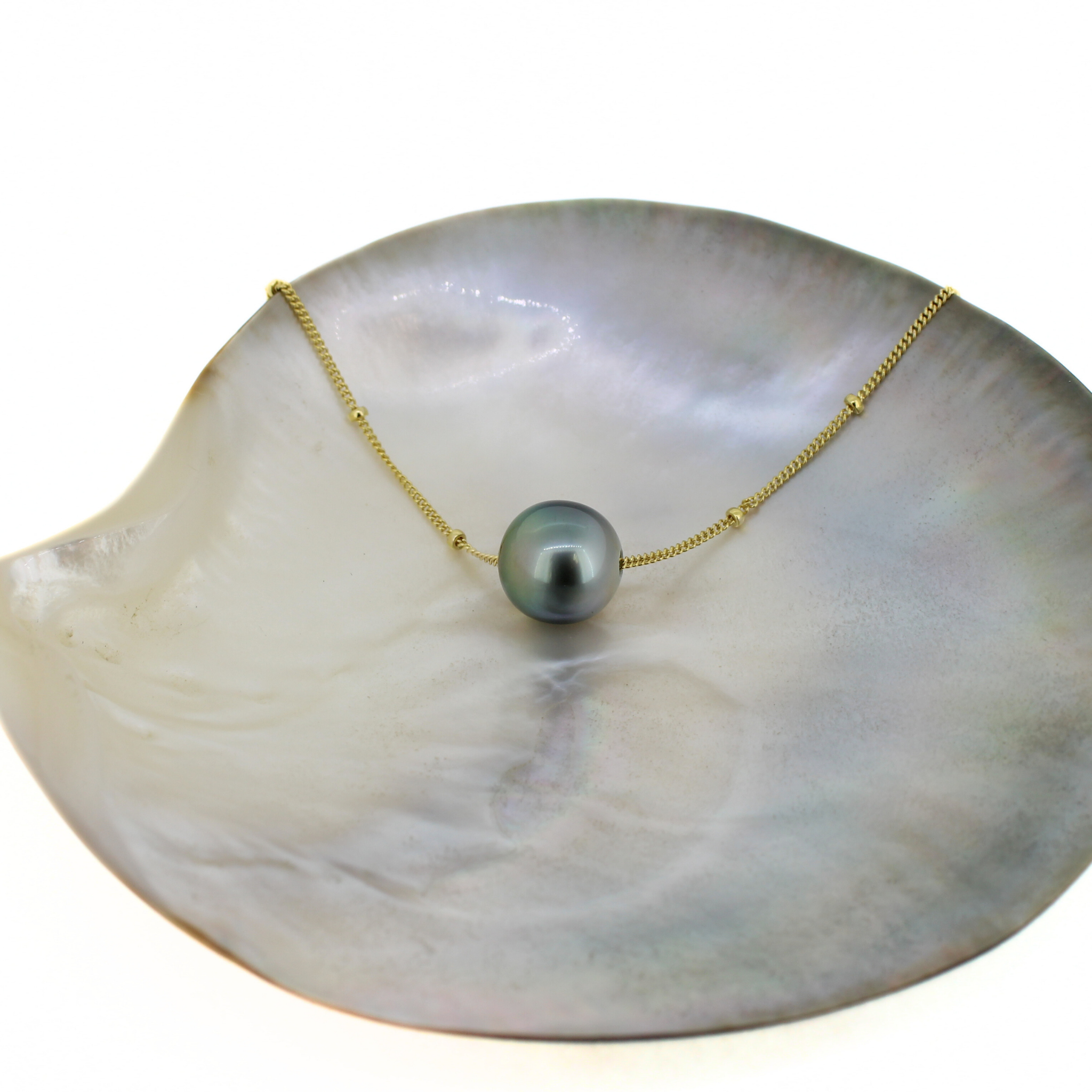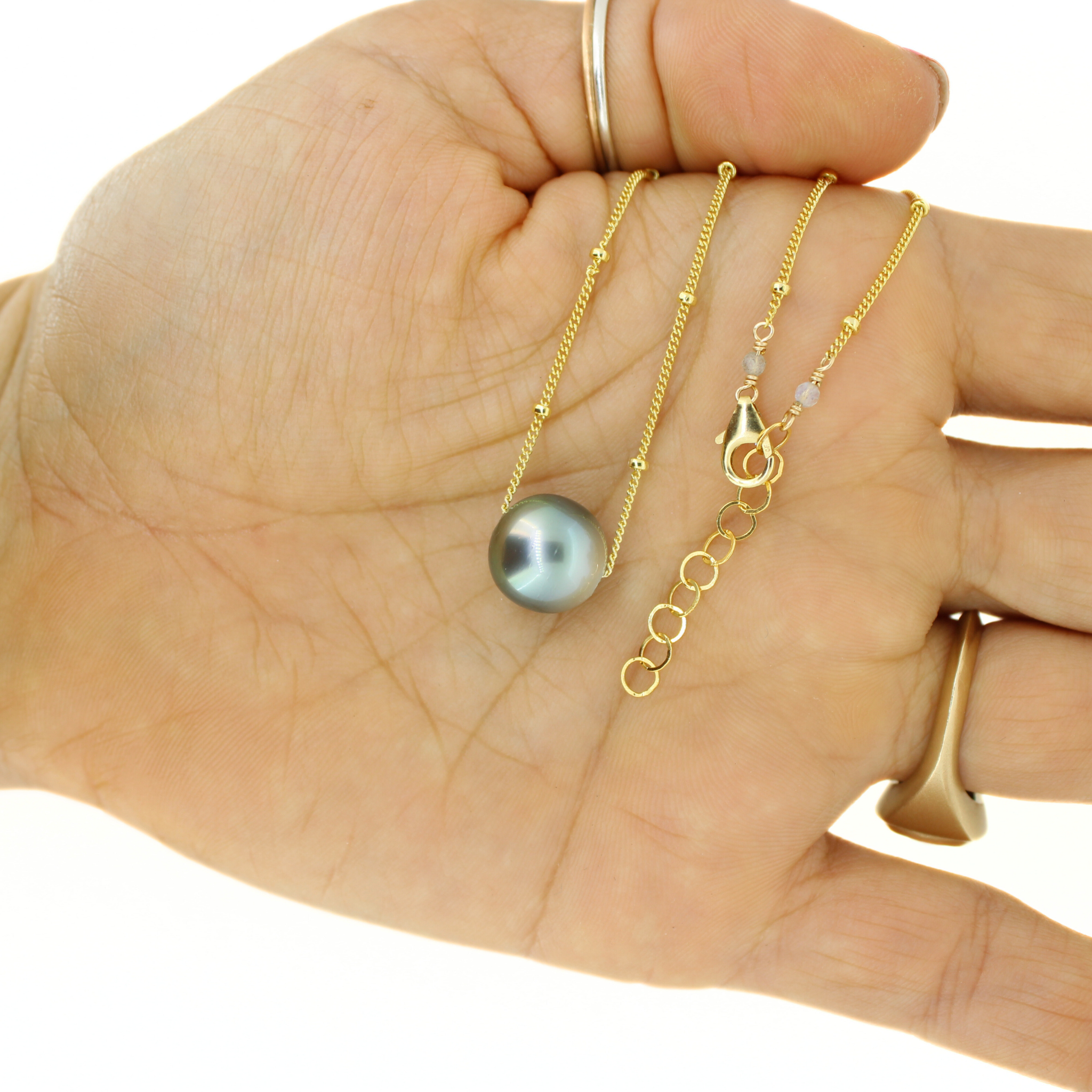 Gold Fill Tahitian Pearl Floating Necklace 18"-19"