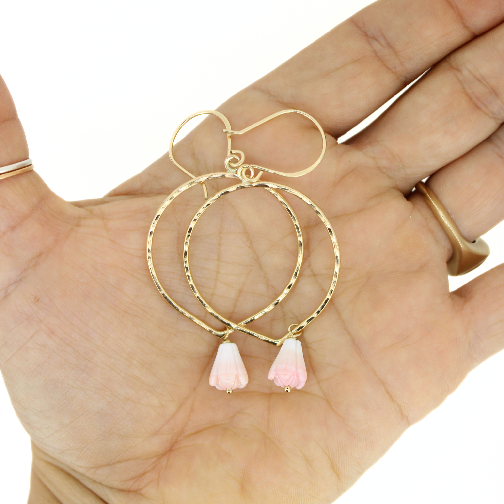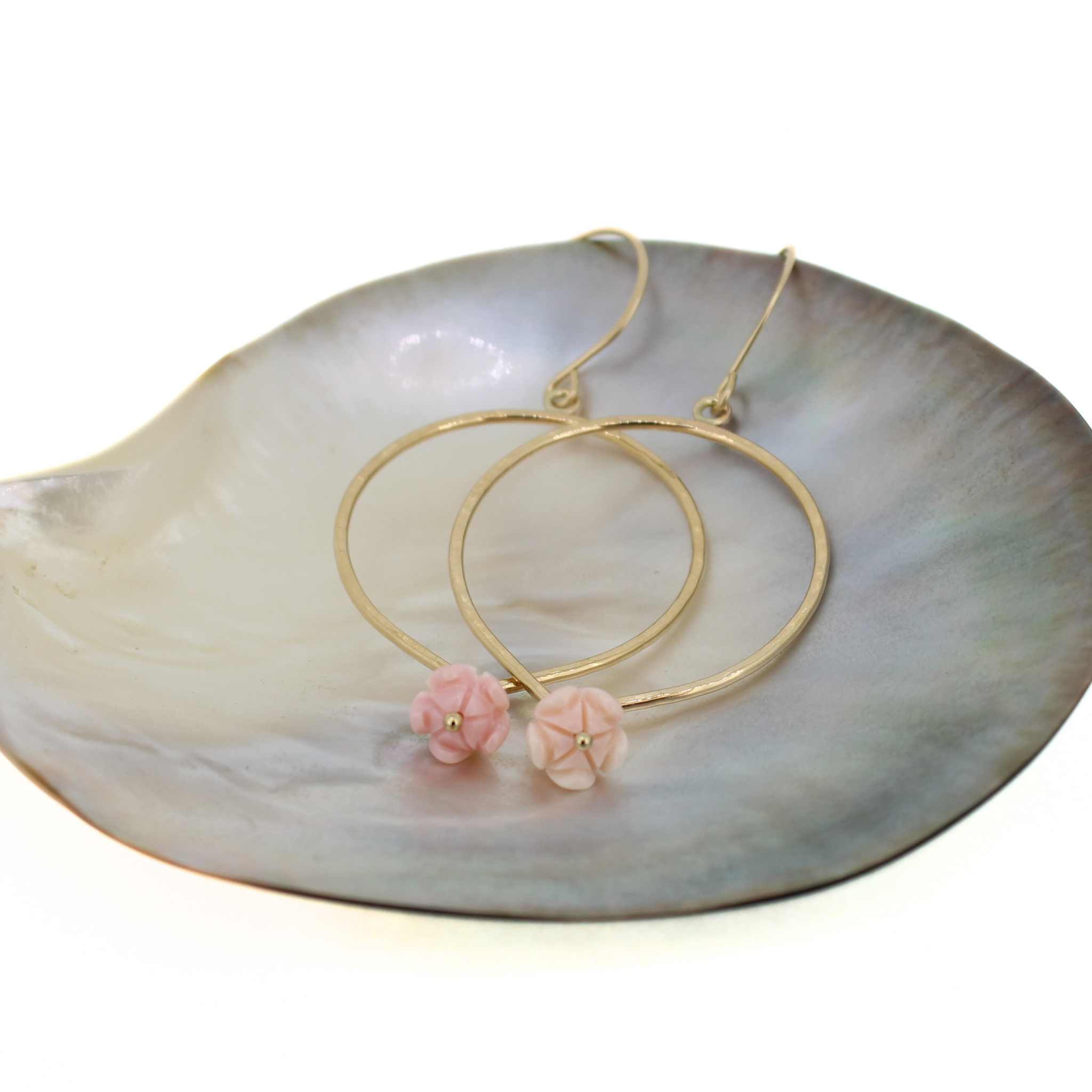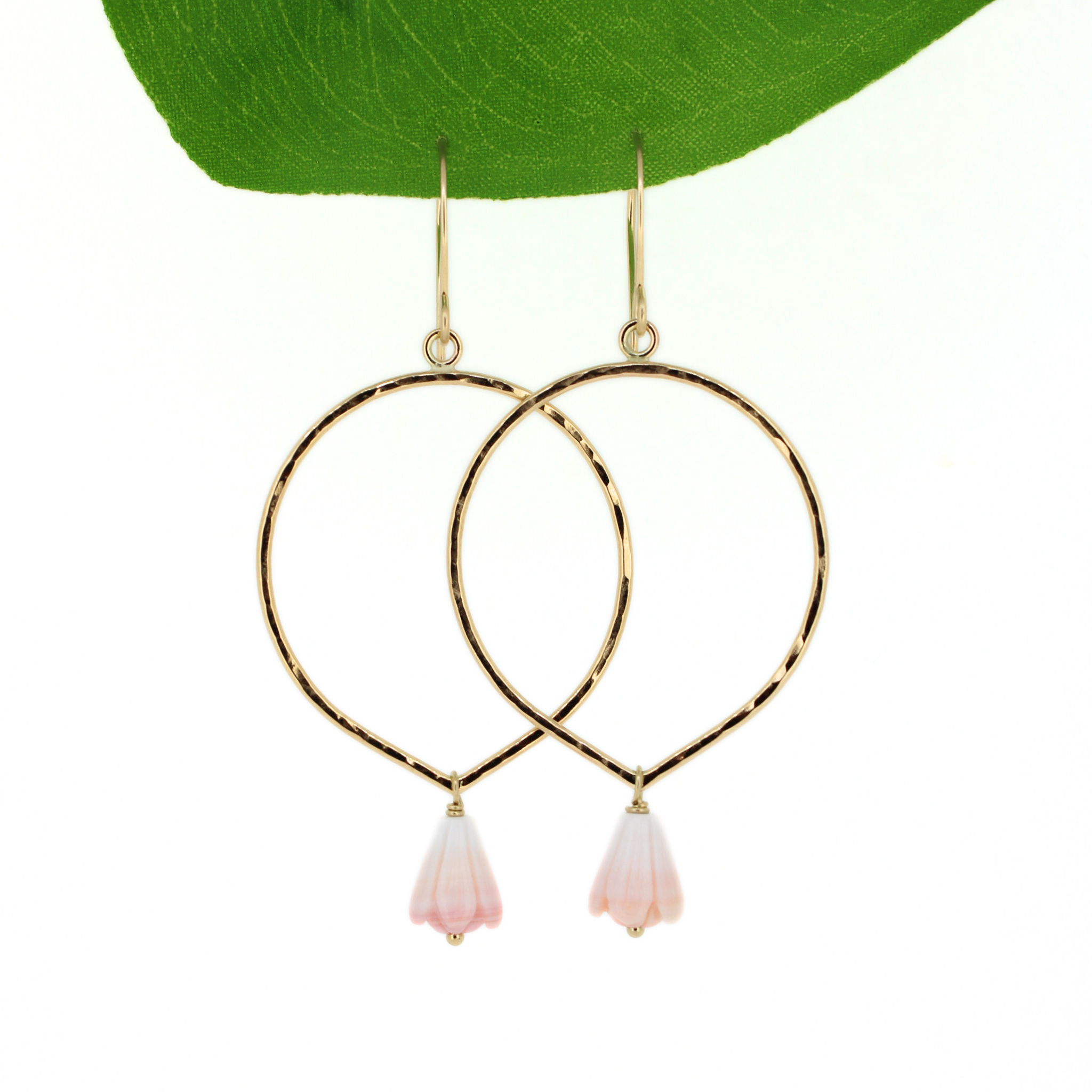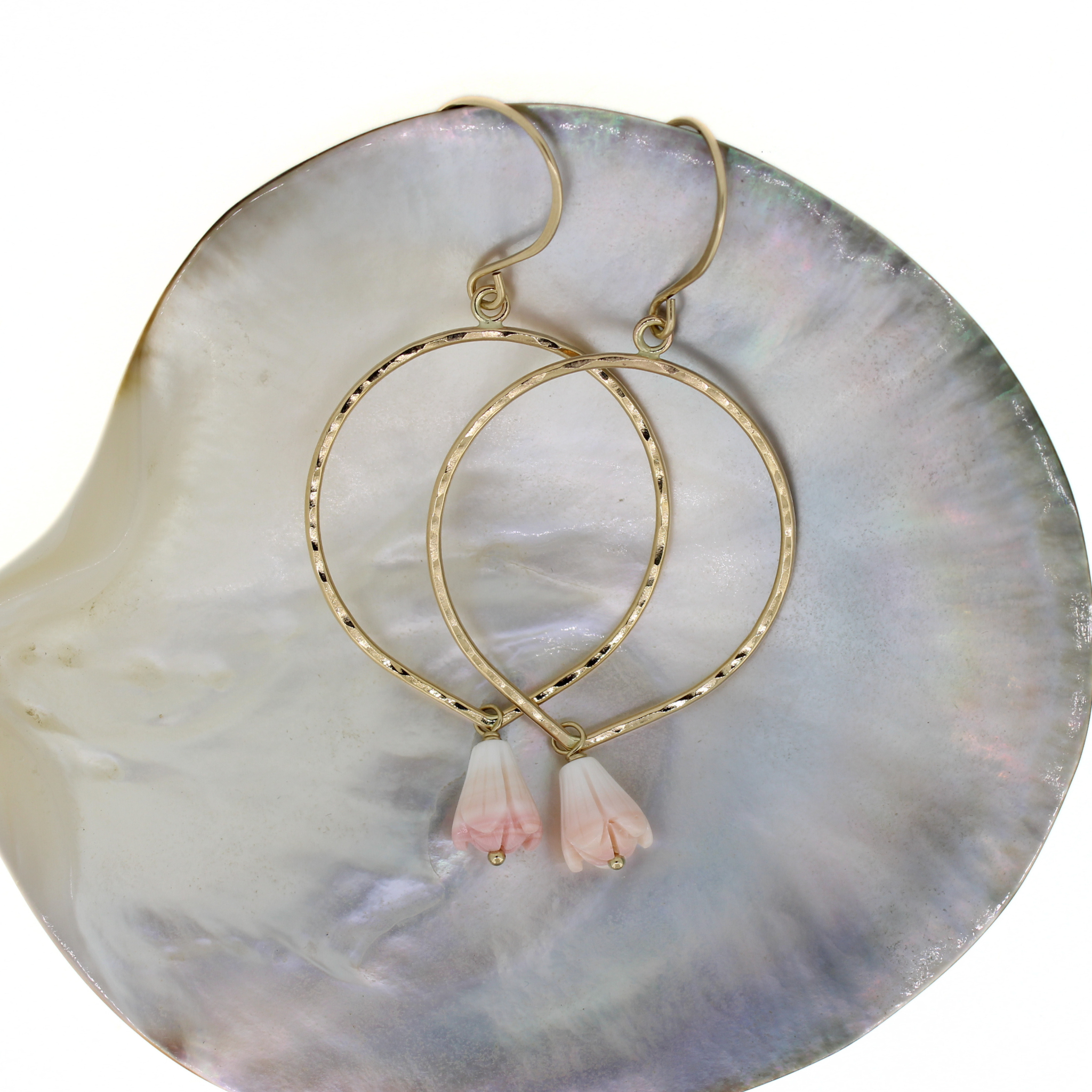 Gold Fill Tear Drop Pikake Conch Shell Hoop Earrings